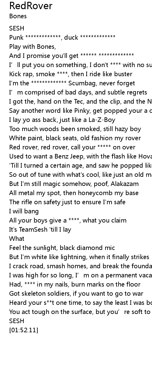| [00:58.47] | Red rover, red rover, call your ***** on over |