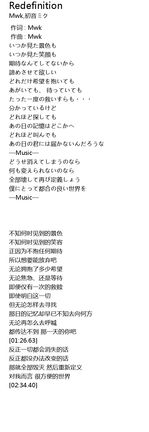 作词 : Mwk |