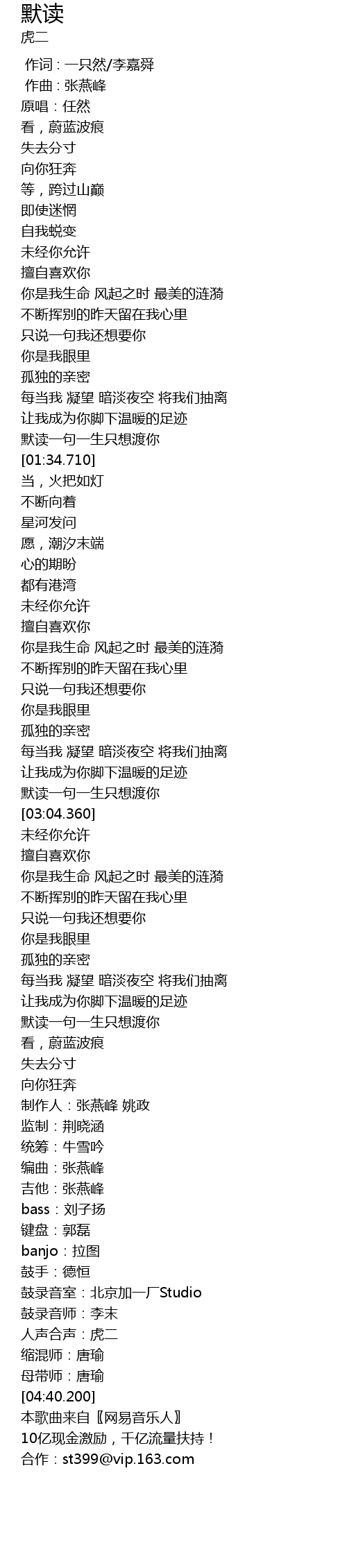 | [01:27.430] | mò dú yī jù yī shēng zhǐ xiǎng dù nǐ |