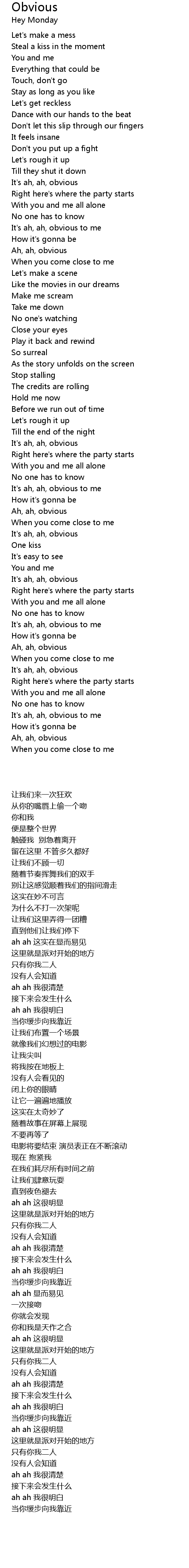 Obvious Lyrics