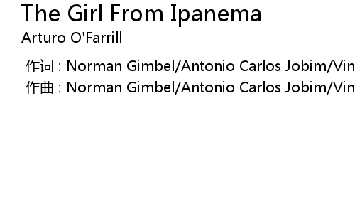 | [00:00.000] | 作曲 : Norman Gimbel/Antonio Carlos Jobim/Vinícius de Moraes |