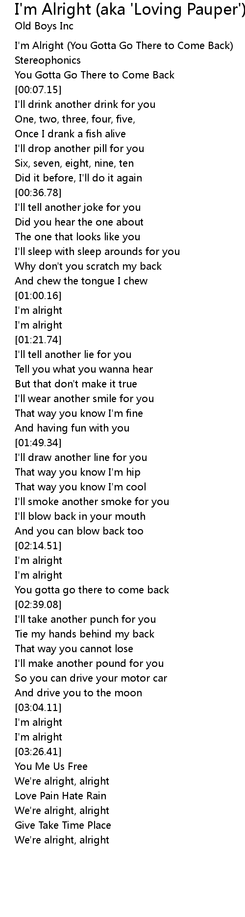 I'm Alright (You Gotta Go There to Come Back) |