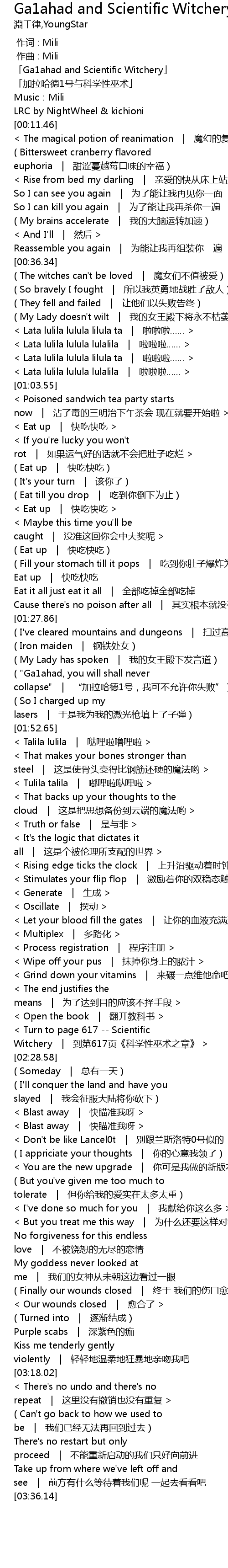 | [00:00.55] | 「Ga1ahad and Scientific Witchery」 |