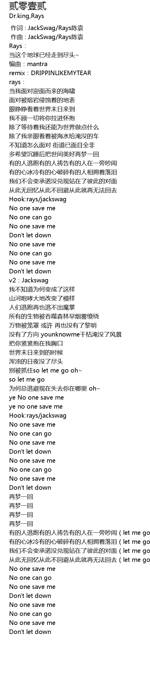 | [00:00.000] | 作词 : JackSwag/Rays陈袁 |