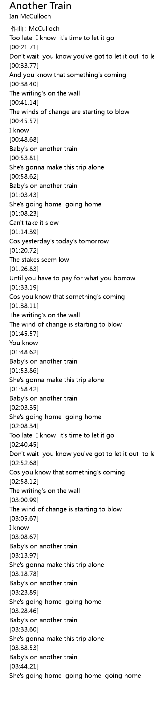 | [01:16.02] | Cos yesterday's today's tomorrow |