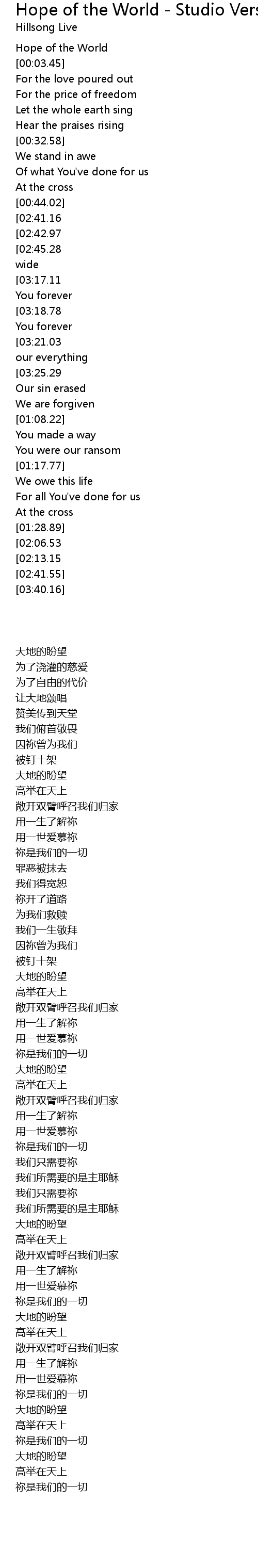 [02:58.74][02:41.16][01:47.35][01:29.25][00:44.26] The hope of the world