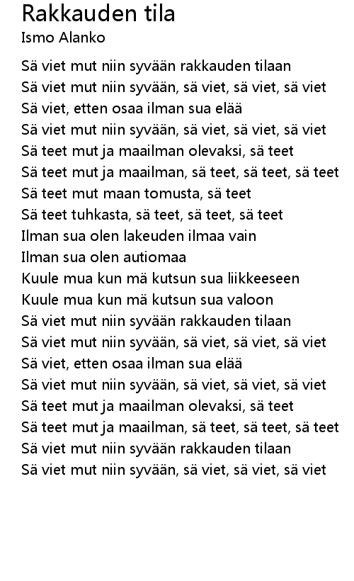 | Sä teet mut ja maailman, sä teet, sä teet, sä teet | |