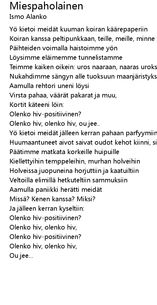 | Olenko hiv, olenko hiv, ou jee.. | |