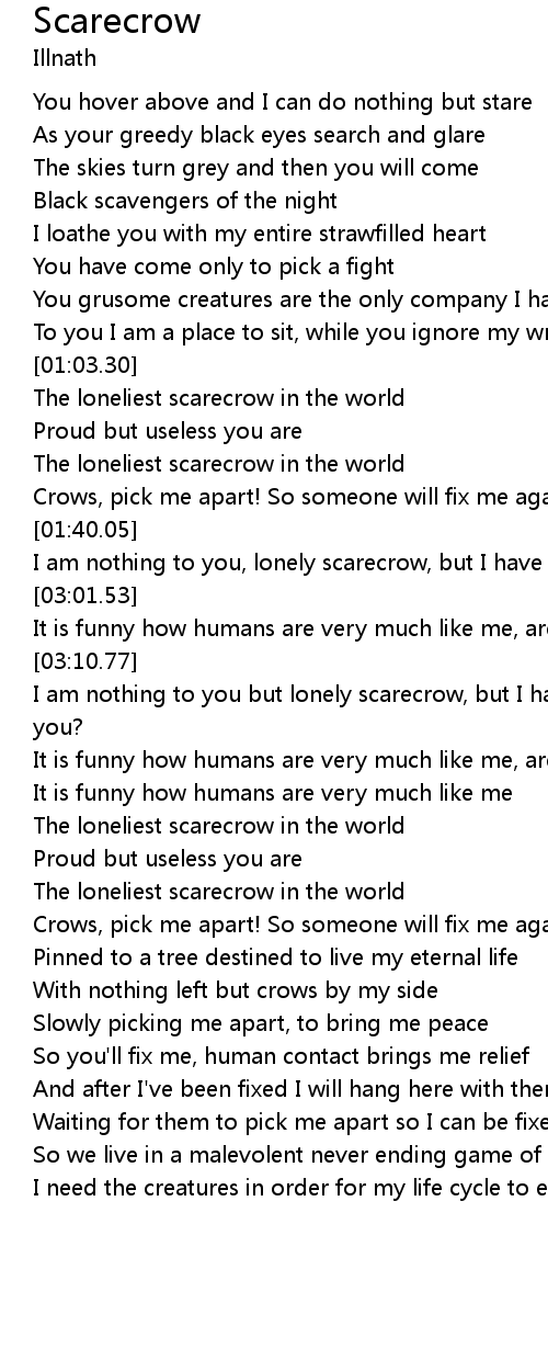 I am nothing to you, lonely scarecrow, but I have feelings too |