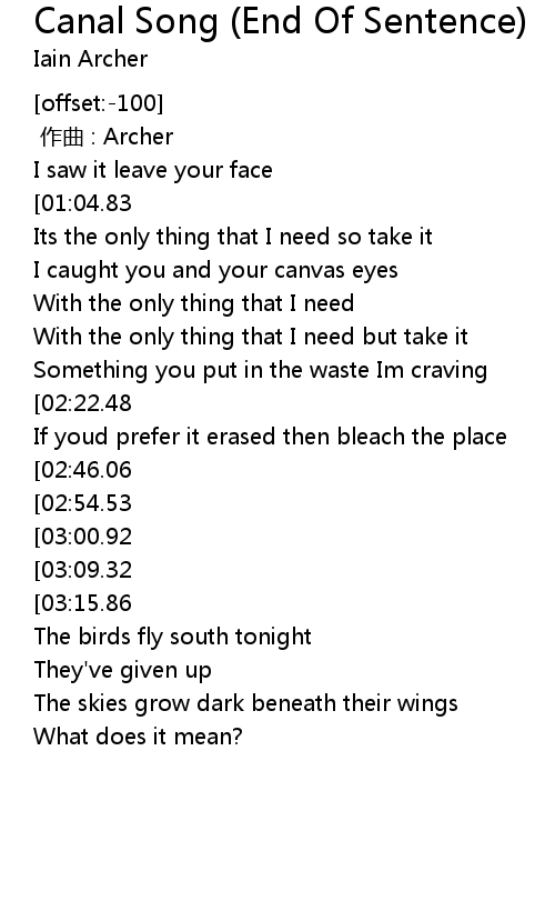 | [01:08.87][02:22.48] | Its the only thing that I need but take it |