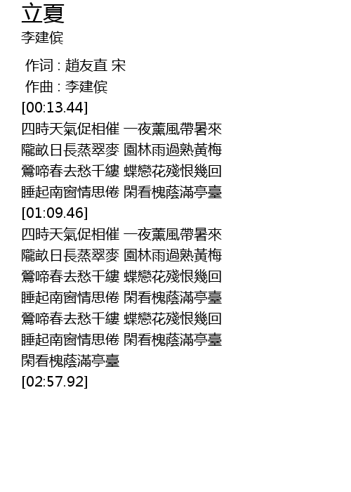 | [00:00.000] | 作词 : 趙友直 宋 |