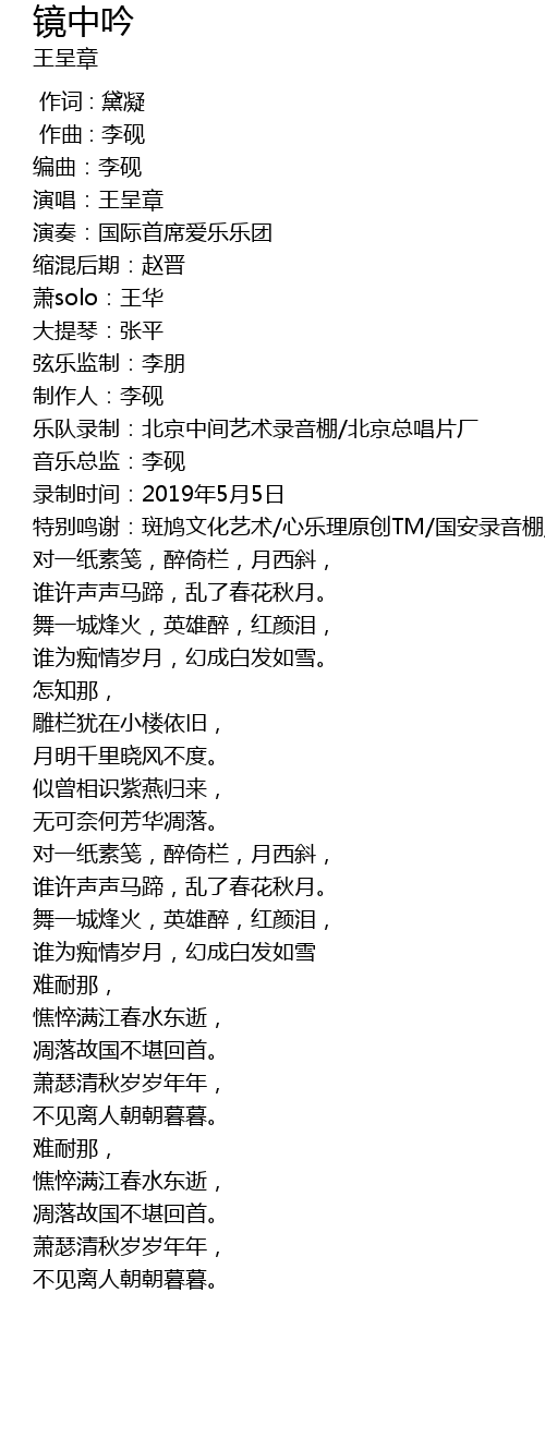| [00:22.903] | 特别鸣谢:斑鸠文化艺术/心乐理原创TM/国安录音棚/中国总唱片 |