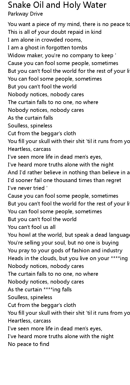 And I'd rather believe in nothing than believe in a ****ing lie |