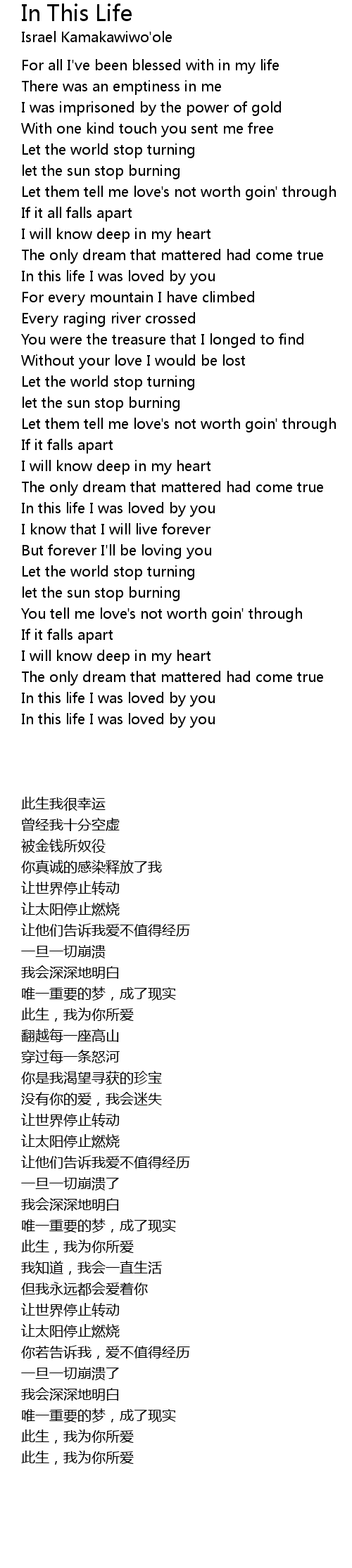 In this life I was loved by you |