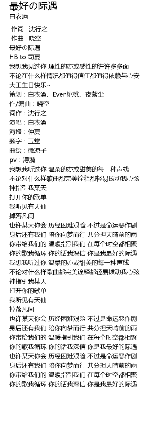 | [02:37.918] | 你的歌我循环 你的话我深信 你是我最好的际遇 |