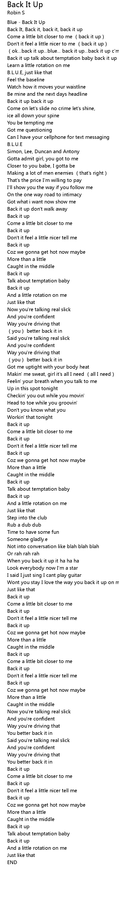 | [00:00.00] | Blue - Back It Up |