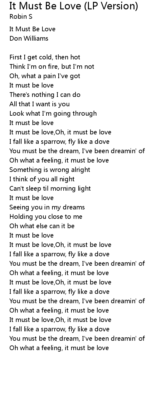 It Must Be Love (LP Version) Lyrics