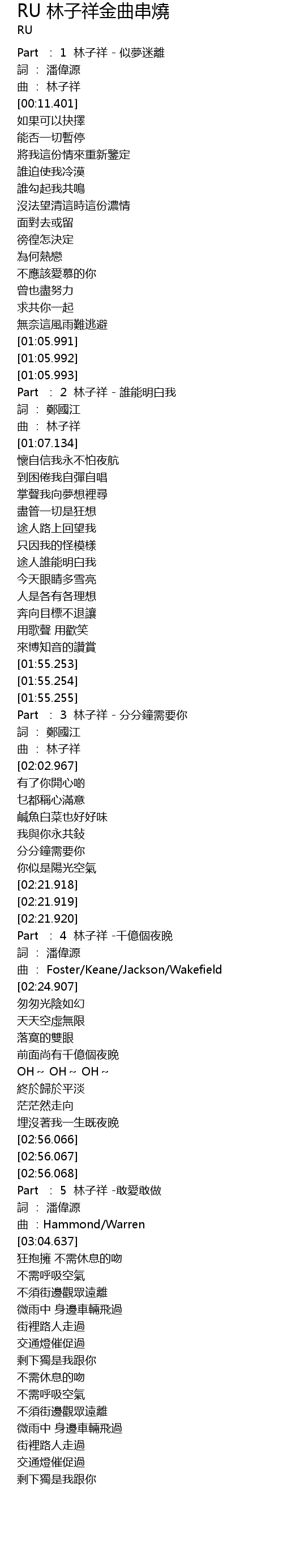 | [02:56.283] | Part : 5 lin zi xiang gan ai gan zuo |
