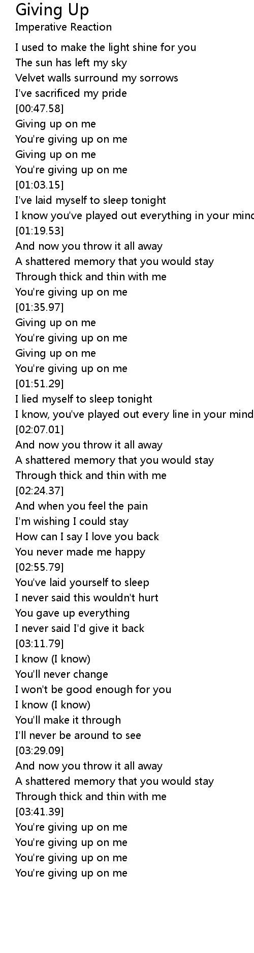 Giving up on me |