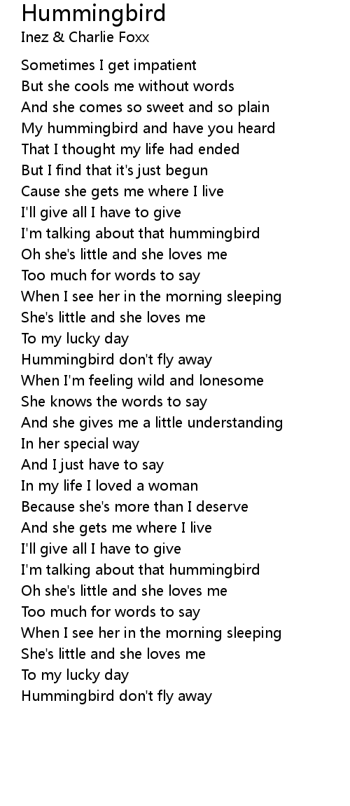 Hummingbird Lyrics