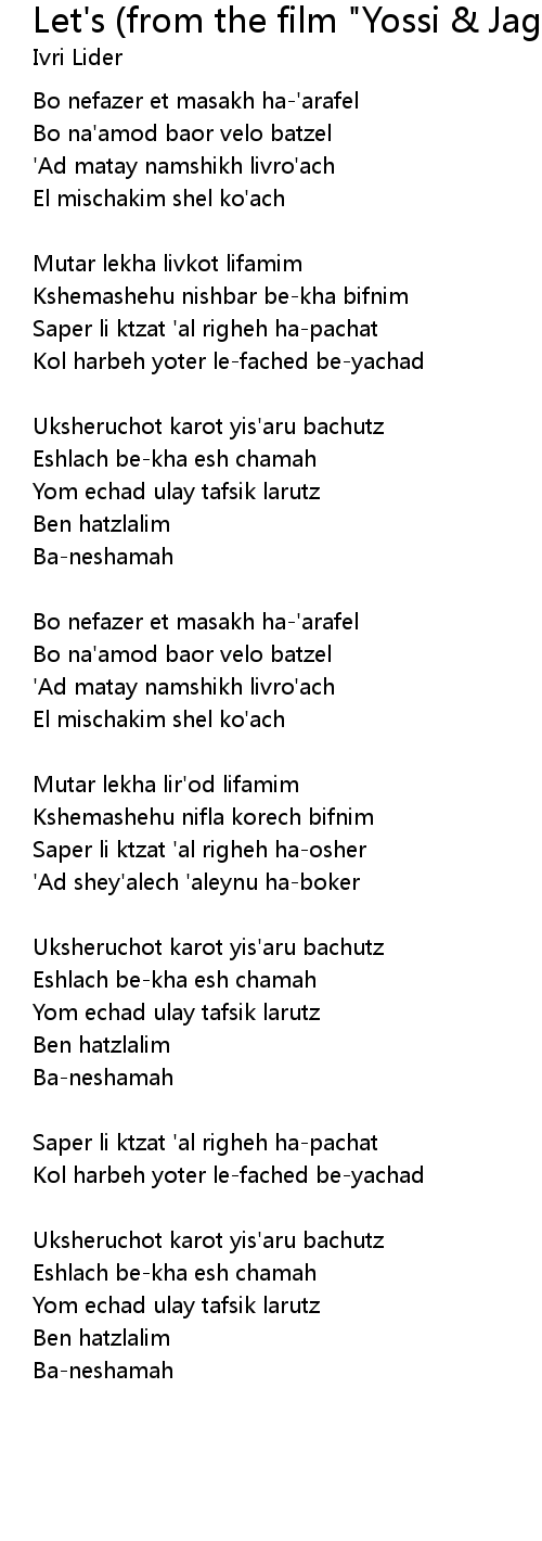 Let's (from the film "Yossi & Jagger) / Bo Lyrics