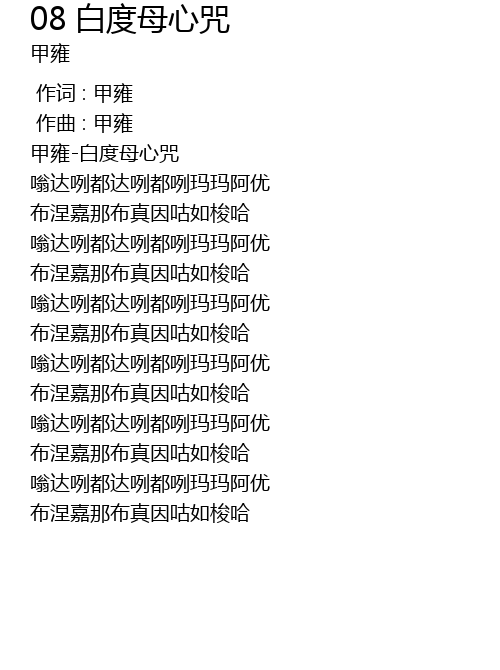 | [00:01.399] | 嗡达咧都达咧都咧玛玛阿优 |