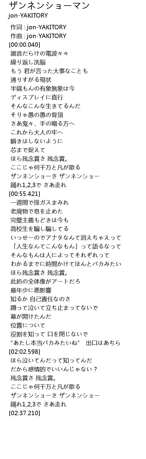 | [02:28.874] | ザンネンショーさ ザンネンショー |
