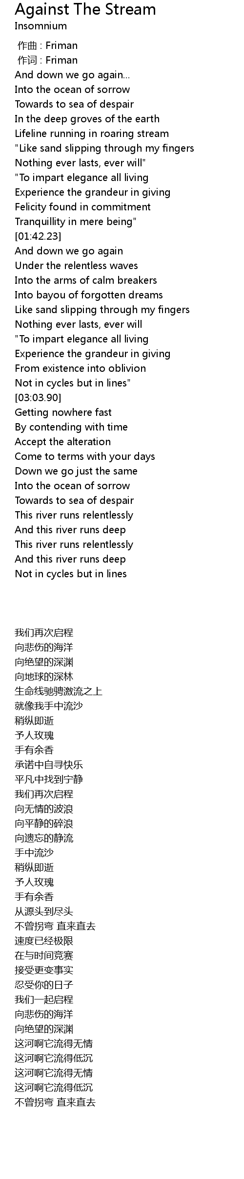 | [00:50.32] | Lifeline running in roaring stream |