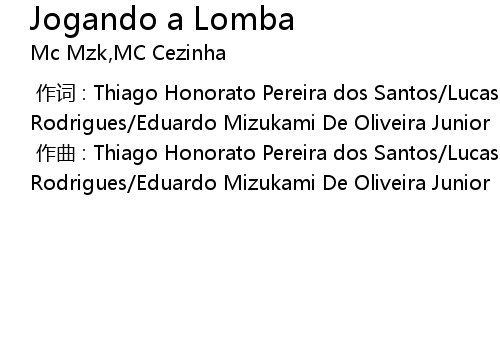 | [00:00.000] | zuò cí : Thiago Honorato Pereira dos Santos Lucas Santos Rodrigues Eduardo Mizukami De Oliveira Junior |