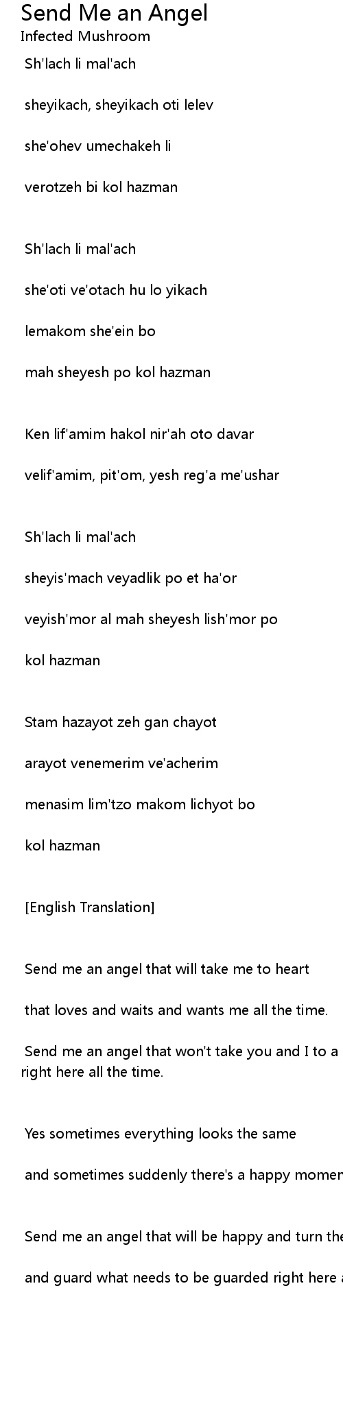 Send me an angel that won't take you and I to a place that doesn't have what's right here all the time. |