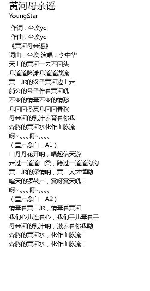 | [00:05.376] | huáng hé mǔ qīn yáo |