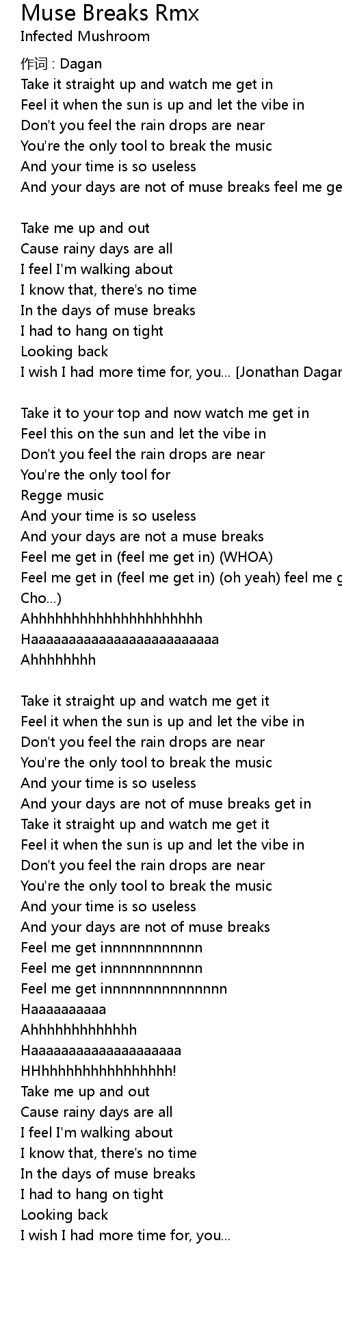 | And your days are not of muse breaks feel me get in c'mon feel me get in oh yeah | |