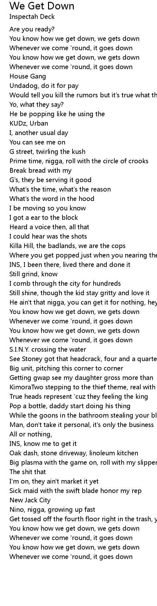 You know how we get down, we gets down |