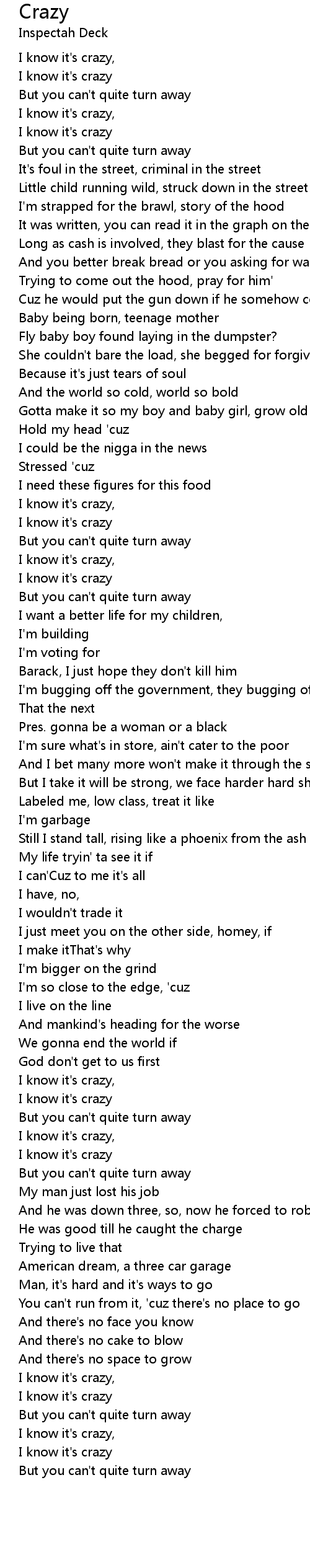 I know it's crazy, |