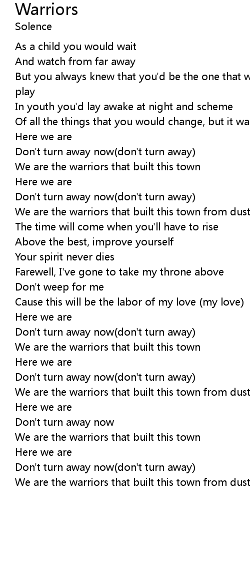 | [01:49.32] | We are the warriors that built this town from dust |