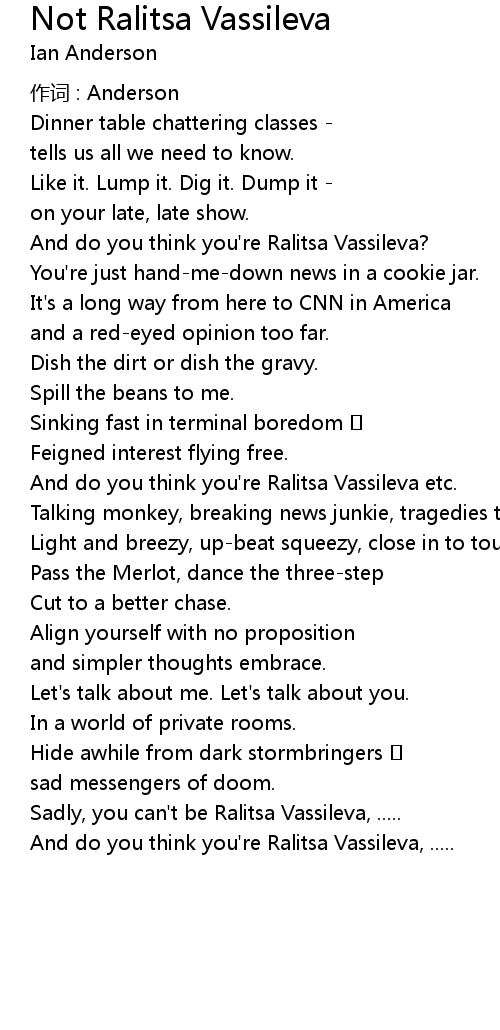 | And do you think you' re Ralitsa Vassileva, ..... |