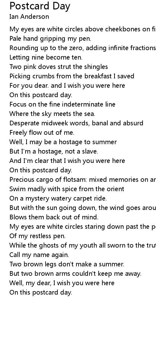 Well, my dear, I wish you were here |