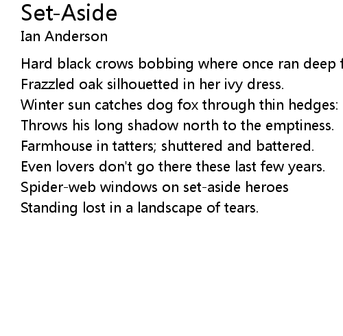 | Hard black crows bobbing where once ran deep furrows. | |