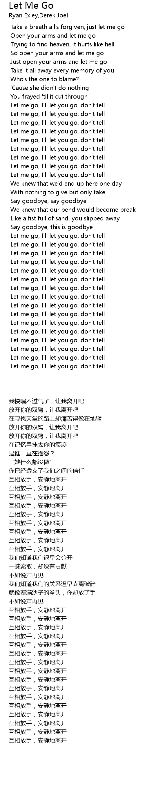 Let me go, I'll let you go, don't tell |