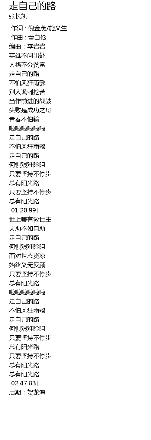 | [01:59.94] | zǒng yǒu yáng guāng lù |