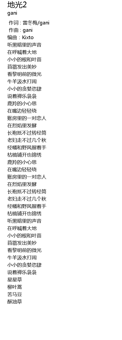 | [00:00.000] | 作词 : 雷冬梅/gani |