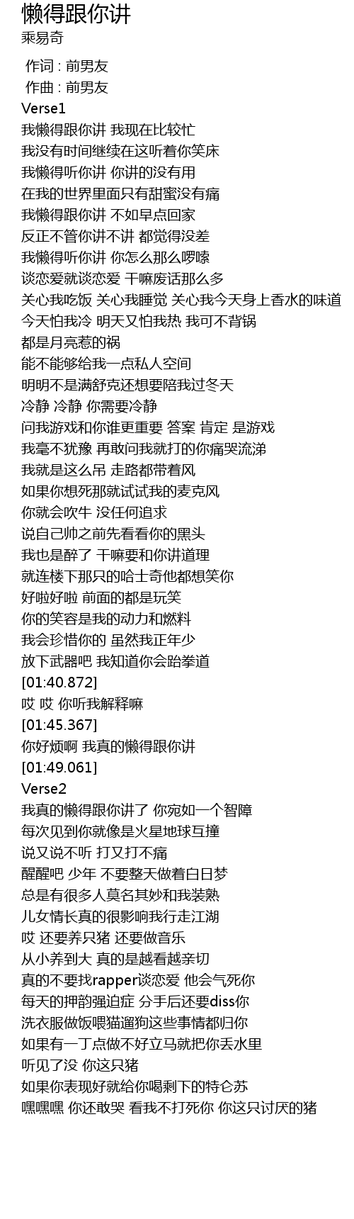 | [00:41.122] | 我懒得听你讲 你怎么那么啰嗦 |