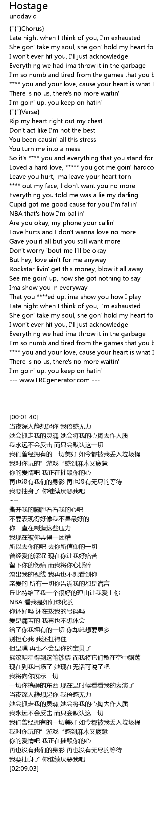 | [01:39.78] | She gon' take my soul, she gon' hold my heart for hostage |