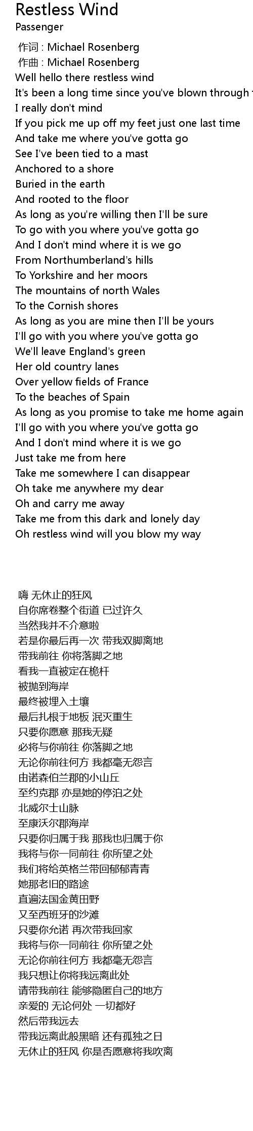 | [00:45.30] | Well hello there restless wind |