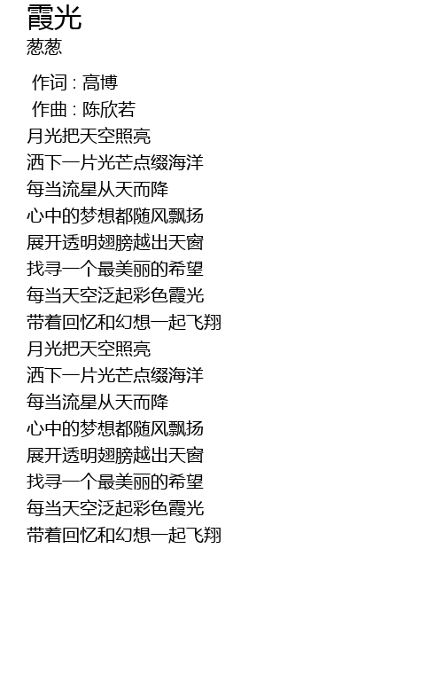 | [01:41.947] | 展开透明翅膀越出天窗 |