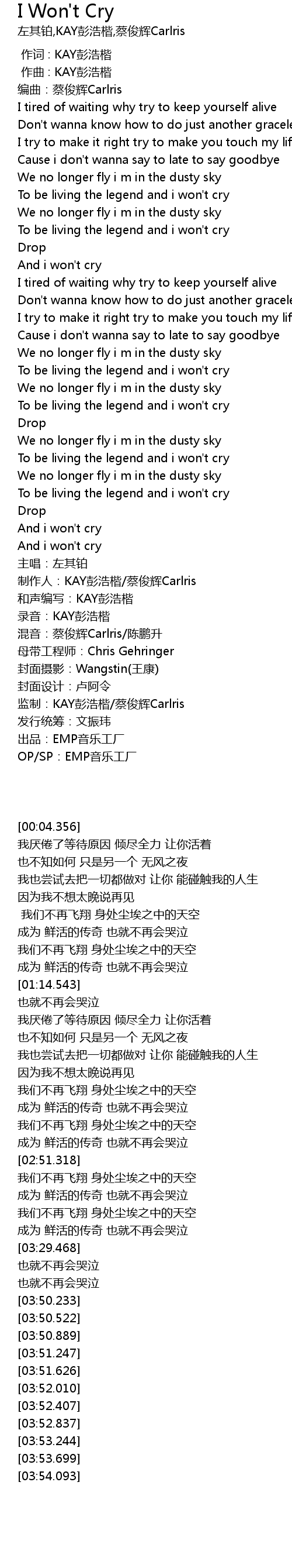 | [03:50.522] | 制作人:KAY彭浩楷/蔡俊辉Carlris |