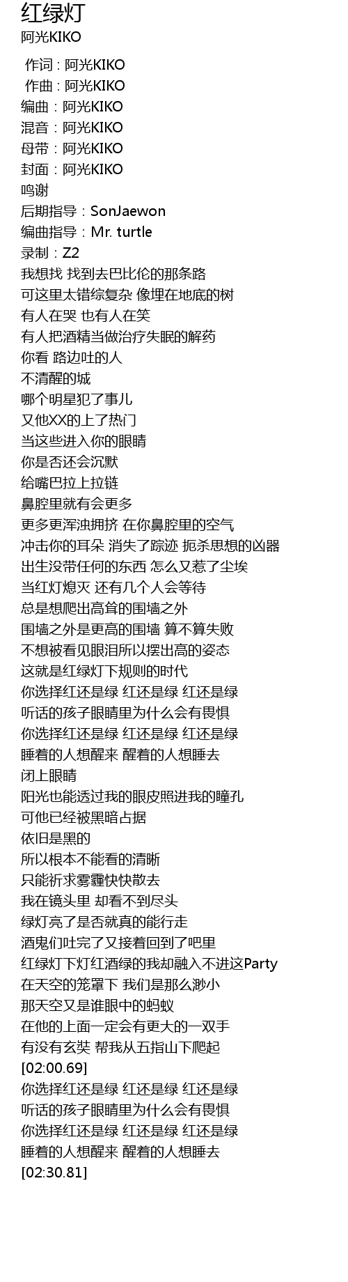 | [02:09.17] | 你选择红还是绿 红还是绿 红还是绿 |