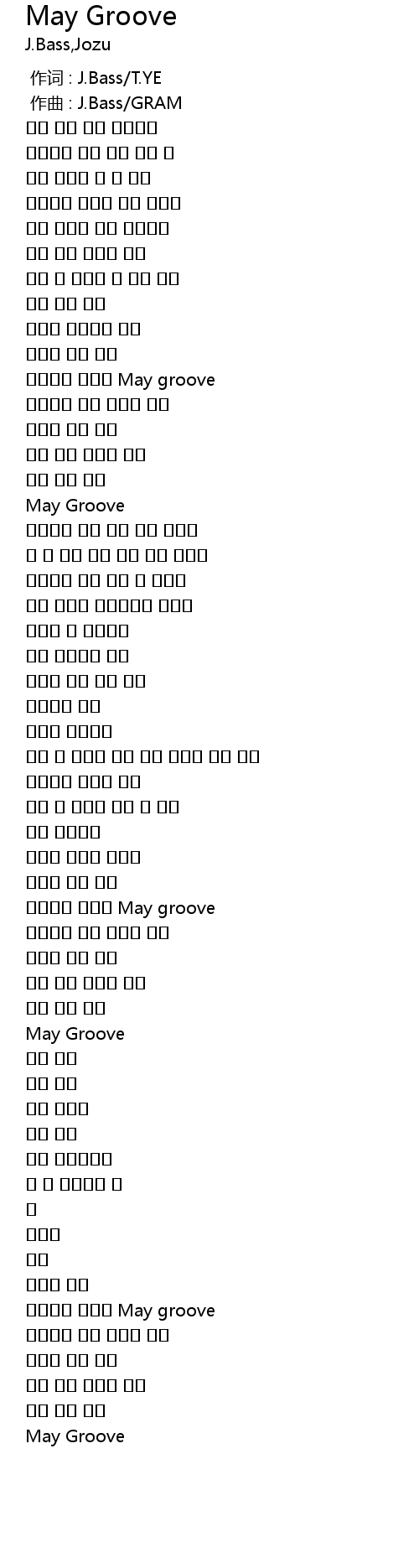 作词 : J.Bass/T.YE |