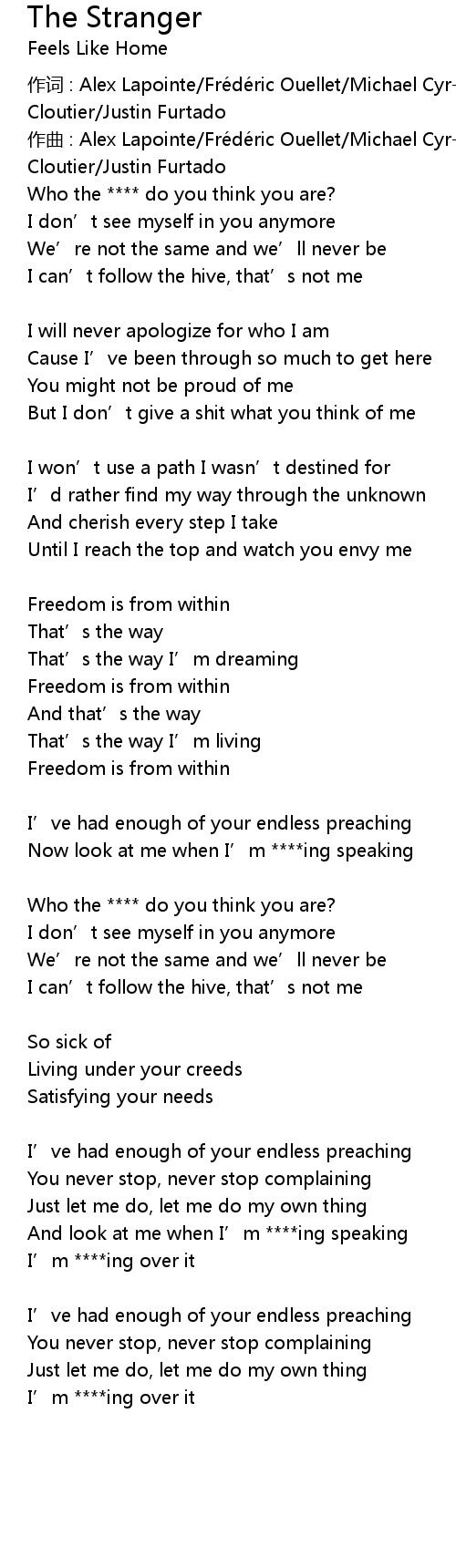 | Song | The Stranger |