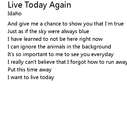| Song | Live Today Again |
